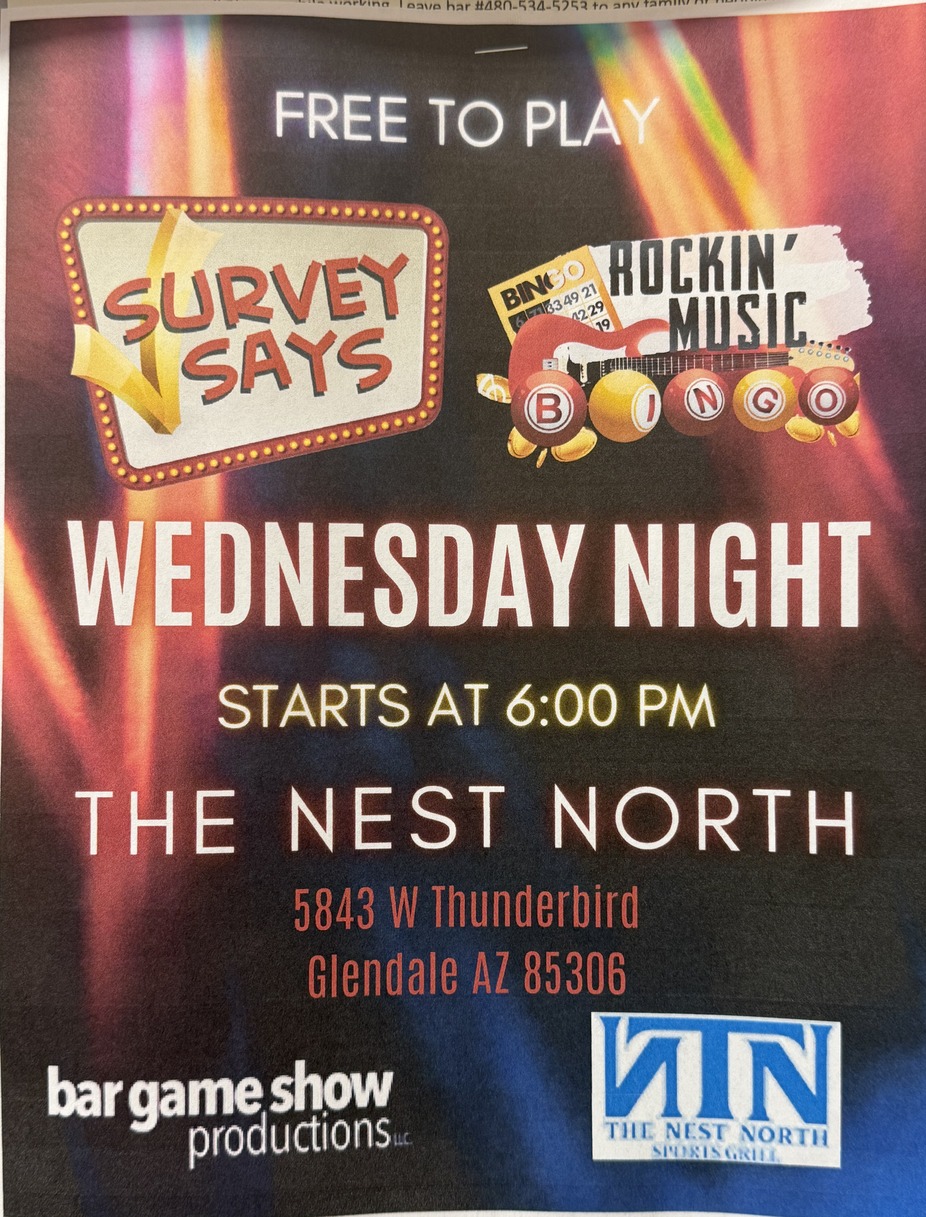 Come Join us on Wednesday at 6PM!! Drink Specials and Prizes!!